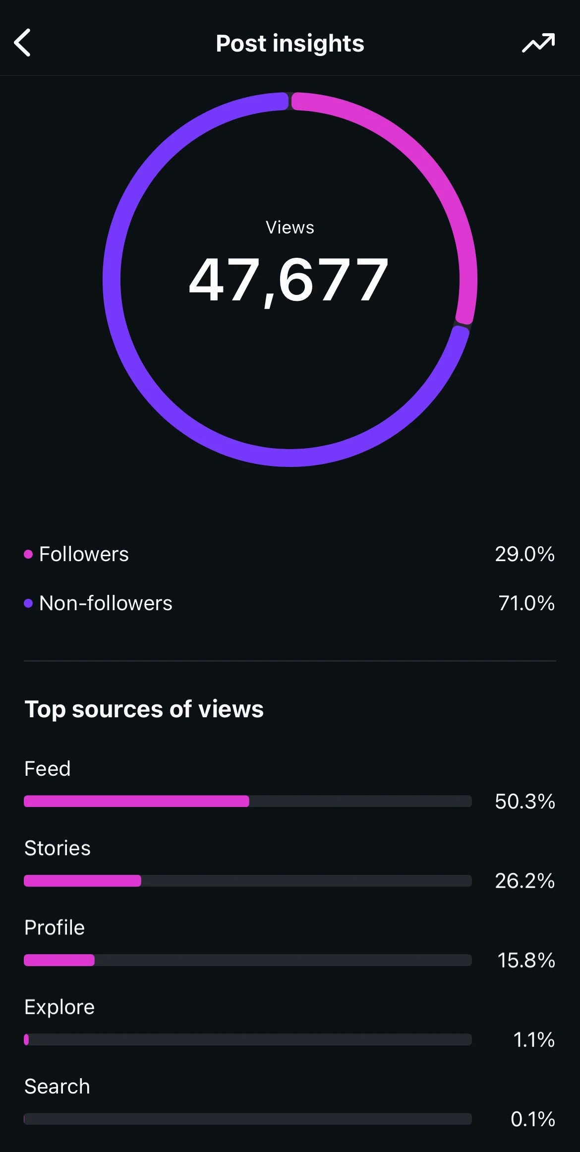 By adapting the viral “67” trend to fit in Campus Couture’s model call event, I successfully appeal to followers and new audiences alike. Viewers unfamiliar with Campus Couture can still engage with the popular humor employed in the video while simultaneously being introduced to our fashion club and learning about our upcoming model call. The reel successfully expanded our reach beyond existing followers, with 34.7% of the post interactions from non-followers.